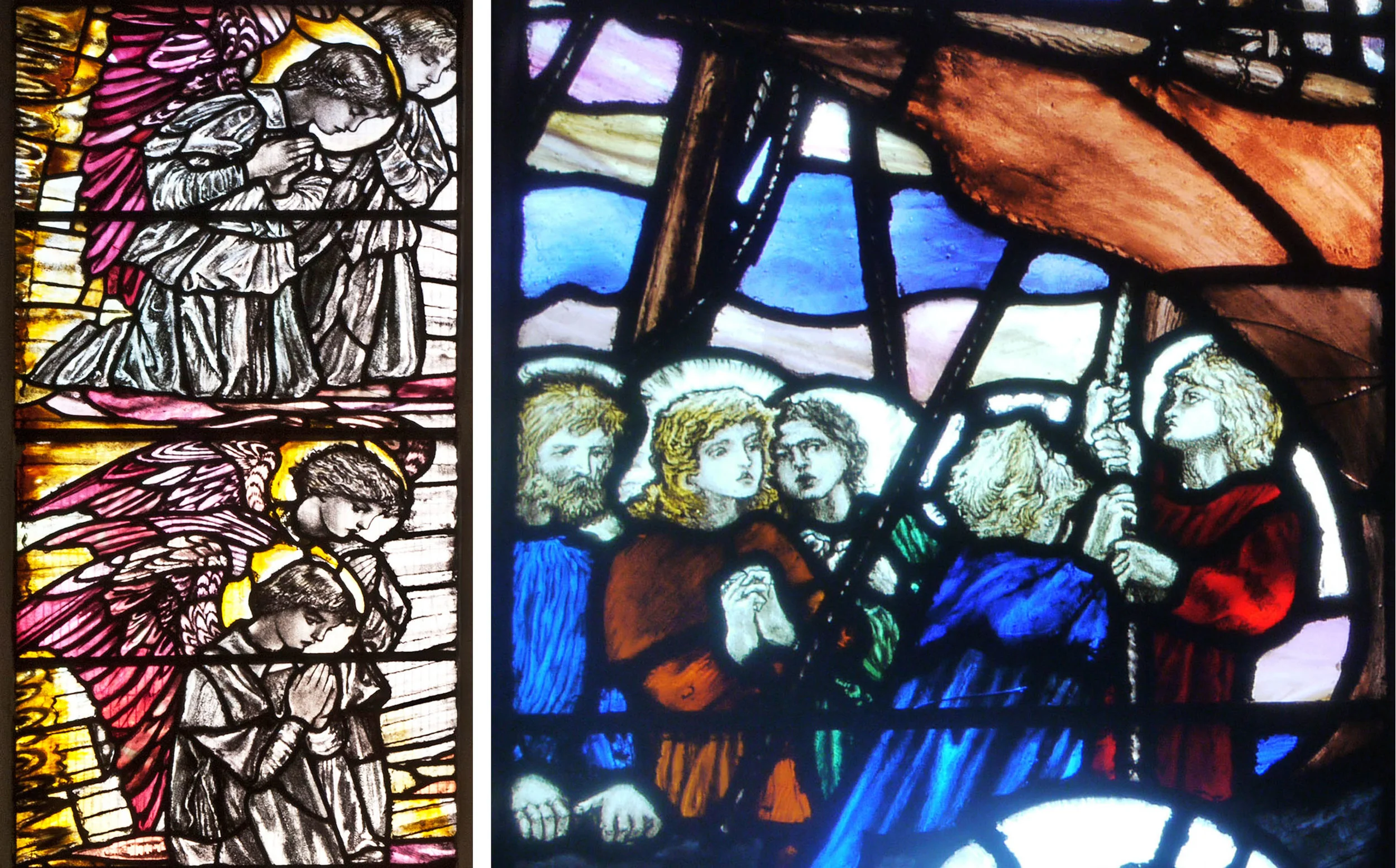 Details from Christopher Whall windows, Leicester Cathedral 1920 (left), Low Marple (right)