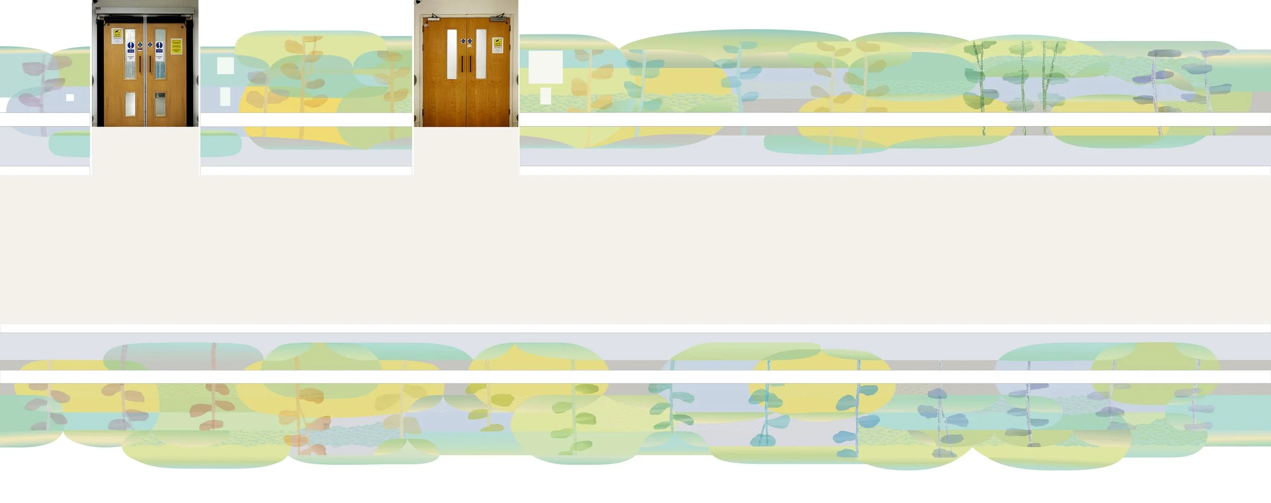 Above: 4 stages of my design for UCHL. Below: latest version with both sides of the corridor design.